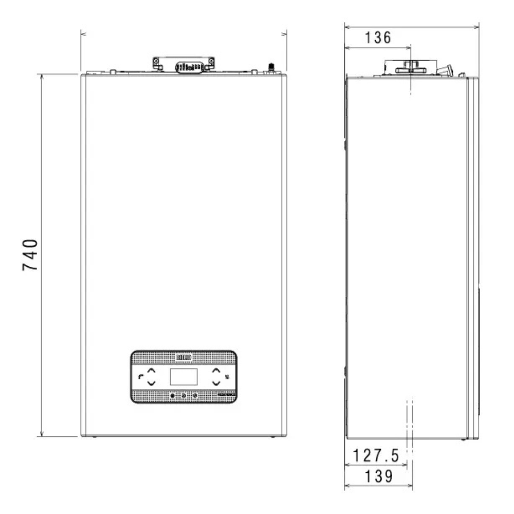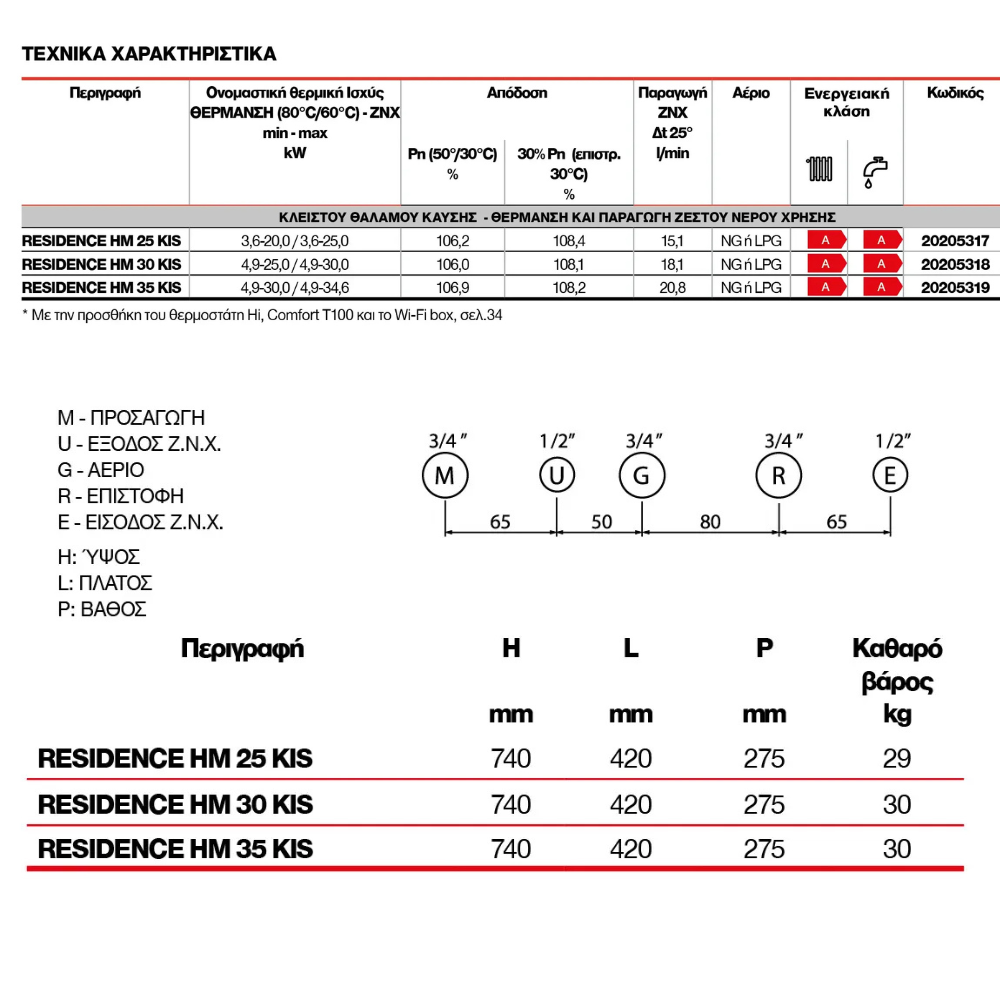 Συμπαγής Σχεδιασμός: Οι διαστάσεις του RESIDENCE HM για όλο το εύρος ισχύος είναι κατάλληλες ακόμη και για εγκατάσταση σε ντουλάπη κουζίνας με βάθος μόλις 27,5 εκ. Ο λέβητας μπορεί επίσης να εγκατασταθεί και σε εξωτερικούς χώρους σε μερικώς προστατευμένη τοποθεσία.